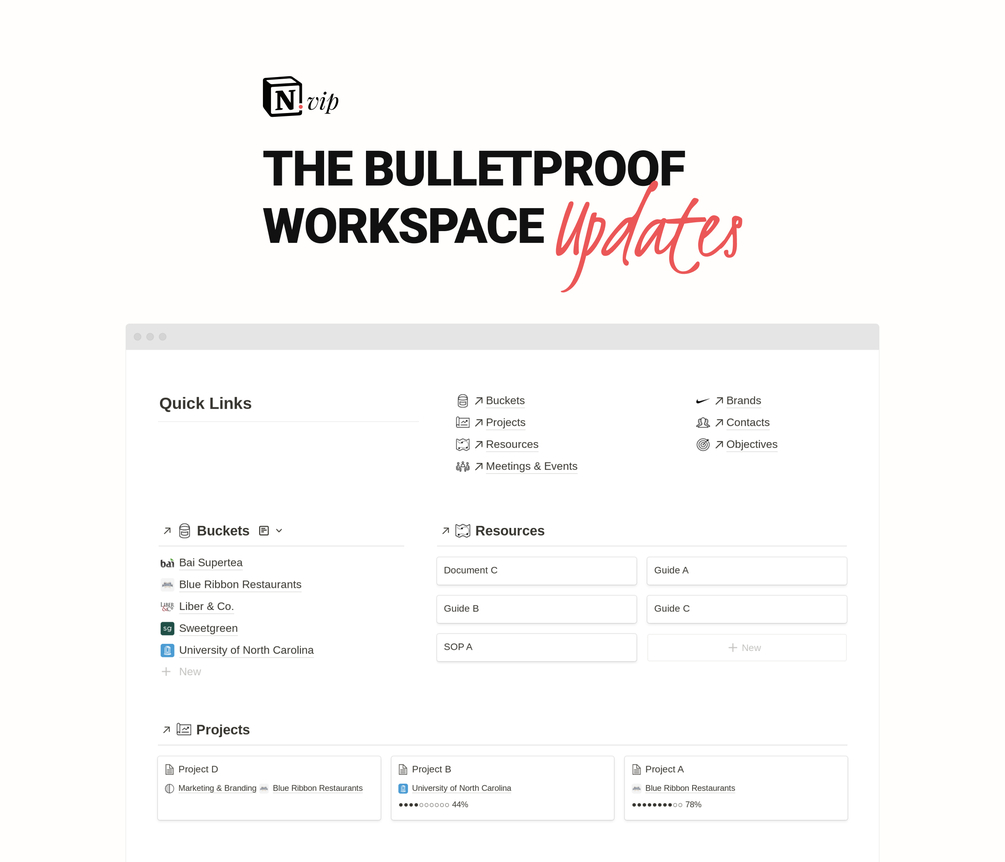 Ahoy! You've reached a retired product. We're now at Notion VIP, where you'll find the most powerful templates and resources for Notion users, including the renowned Bulletproof Workspace.